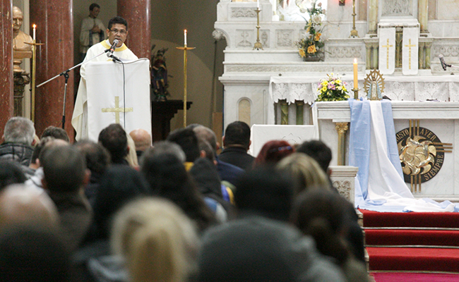 Debido al mal tiempo, la celebración religiosa se realizó en la Parroquia Santísima Trinidad, ubicada en la avenida San Martín N°3773. Fue encabezada por el diputado bonaerense Mariano Cascallares y el intendente interino de Almirante Brown, Juan Fabiani.