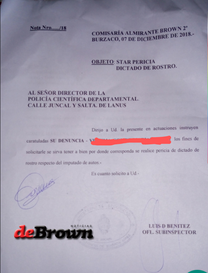 Tras quedar internada durante cinco horas, la vecina fue dada de alta. Al día siguiente, efectuó la denuncia en la Comisaría N°2 de Almirante Brown. Interviene la UFI N°4 del Departamento Judicial de Lomas de Zamora.