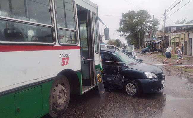 Fuerte choque entre un colectivo y un auto: una mujer sufrió politraumatismos