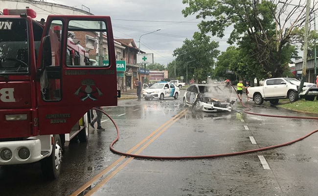 Un auto chocó contra una camioneta y se incendió: dos heridos