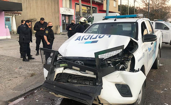 Brutal choque de un patrullero contra un colectivo en Adrogué