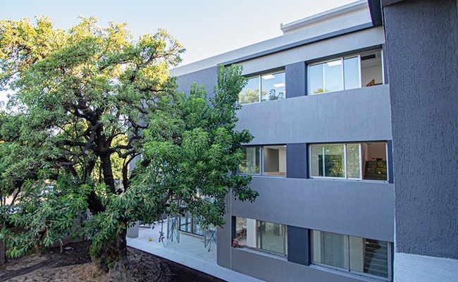 El edificio cuenta con una planta baja, 1° y 2° piso, en una superficie total de 1.800 metros cuadrados (con 600 metros cuadrados cubiertos por planta). Tiene diez aulas, tres laboratorios, un auditorio, una biblioteca y dos salas para docentes; además de espacios administrativos, áreas de servicios y núcleos sanitarios.