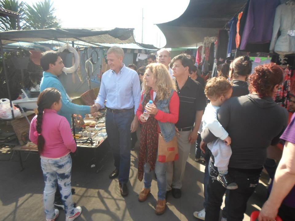 El empresario llegó a Solano junto a su par y también candidata, Claudia Rucci, junto con los candidatos a diputado provincial Jorge Mancini y al candidato a concejal Héctor Romero, con quienes visitó la feria, y mantuvo el contacto "cara a cara" con vecinos, comerciantes y transeúntes.