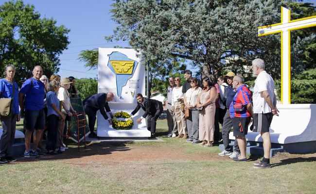 Junto a representantes de la comunidad local, las autoridades colocaron una ofrenda floral al pie del monumento del aviador. Posteriormente, los homenajes se trasladaron al Country Club Longchamps, con la actividad organizada por el Instituto Newberiano de Almirante Brown.