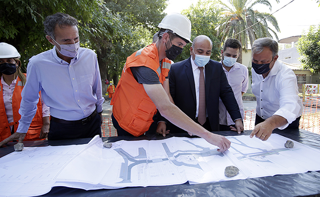 Allí las autoridades recorrieron puntualmente el avance de las obras de pavimentación de la Batalla de Maipú. Esta tiene como objetivo alivianar el tránsito de la avenida Hipólito Yrigoyen y también ser una conexión directa para el futuro paso bajo nivel.