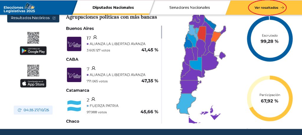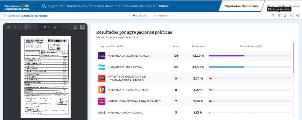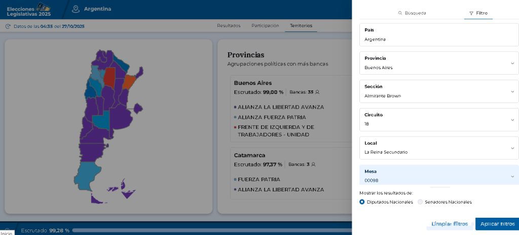 En este marco, la Cámara Nacional Electoral (CNE) habilitó una web que permite acceder a los datos oficiales del escrutinio provisorio. Entre ellos, los vecinos podrán conocer los sufragios obtenidos en su propia mesa de votación.