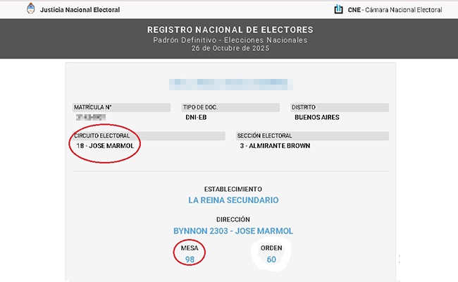 En primer lugar, para acceder a los resultados, la persona deberá saber su número de circuito y mesa. Estos figuran en el padrón electoral. Podés ingresar haciendo clic aquí.