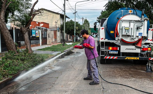 En tanto, camiones desobstructores limpiaron las bocas de tormenta en los barrios, multiplicando las acciones preventivas que buscan mitigar los efectos del temporal.