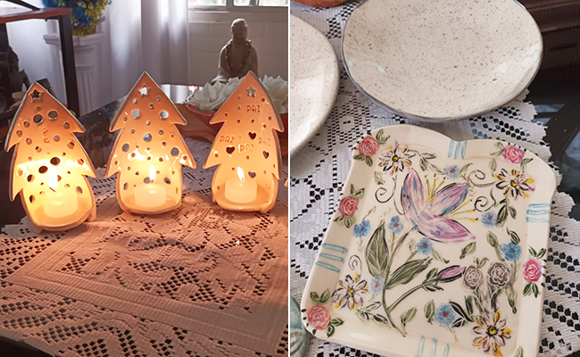 En otros de los puestos, quienes se acerquen a vivir esta jornada especial verán las alternativas elaboradas de cerámicas y artesanías de “ViviCer”, la cual dispondrá de arbolitos realizados a mano por $18 mil y platos tipo tostadas a $20 mil.