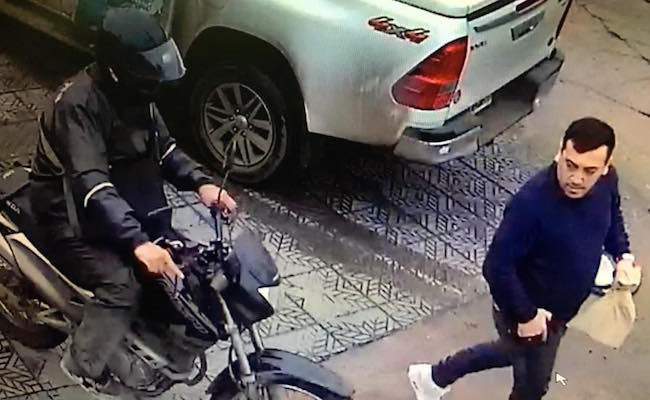 Las imágenes del asalto, captadas por una cámara de seguridad de una casa, se viralizaron en Facebook. En ellas se puede ver en detalle la cara del agresor; mientras el cómplice permanece con el casco.