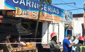Perdió el control del camión y terminó dentro de un comercio